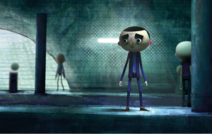 Résumé : Cécil, un petit garçon dans sa bulle, porte un masque de poisson, invisible aux yeux des autres. Son petit monde fragile se voit déstabilisé lorsqu’un de ses camarades de classe s’en prend à lui et le blesse. Il endosse une nouvelle identité et décide alors de changer de masque.